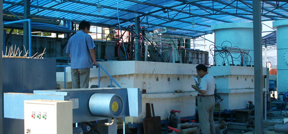 由于電解時生成羥基自由基 · OH氧化性極強,同時加入氧化劑,致使有機物在高頻直流電場中的切割、分解下,可有效破壞油滴的表面活性劑,使得有機物迅速得以氧化,帶正電膠體的Fe(OH)2和Fe(OH)3也可以中和油滴表面所帶的負電荷,降低電勢,壓縮雙電層,促使油滴脫穩,使油水分離,小油滴集聚上??;同時由于電解時所產生的氫氣泡直徑為20μm,氧氣泡直徑為20—60μm,遠小于化學氣浮法的氣泡直徑80μm,因此破乳去除率較高。實踐證明,當含乳油量>1000mg/L時,適當降低板間電壓值,提高板間電流值,進行破乳效果十分理想。